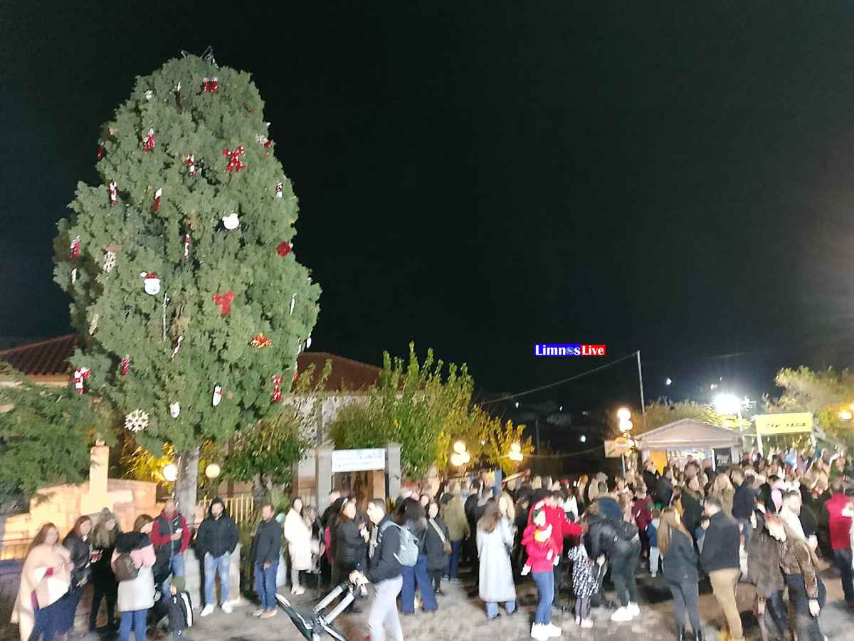 Το μεγαλύτερο φυσικό χριστουγεννιάτικο δέντρο του νησιού, στολισμένο με χιλιάδες λαμπιόνια και στολίδια, έλαμψε μαγικά και σηματοδότησε την έναρξη της εορταστικής περιόδου για το χωριό, αλλά και ολόκληρη τη Λήμνο.