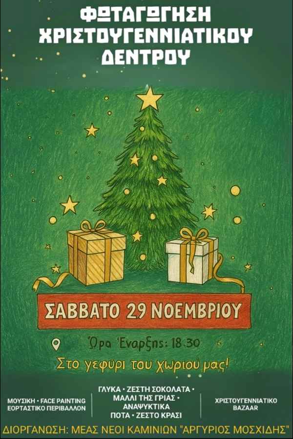 Το Σάββατο 29 Νοεμβρίου, στις 18:30, σας περιμένουμε στο γεφύρι του χωριού μας για να φωταγωγήσουμε το Χριστουγεννιάτικο δέντρο και να ζήσουμε μια βραδιά γεμάτη χαρά, μουσική και εορταστική διάθεση! 🎶🌟