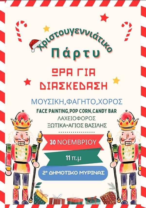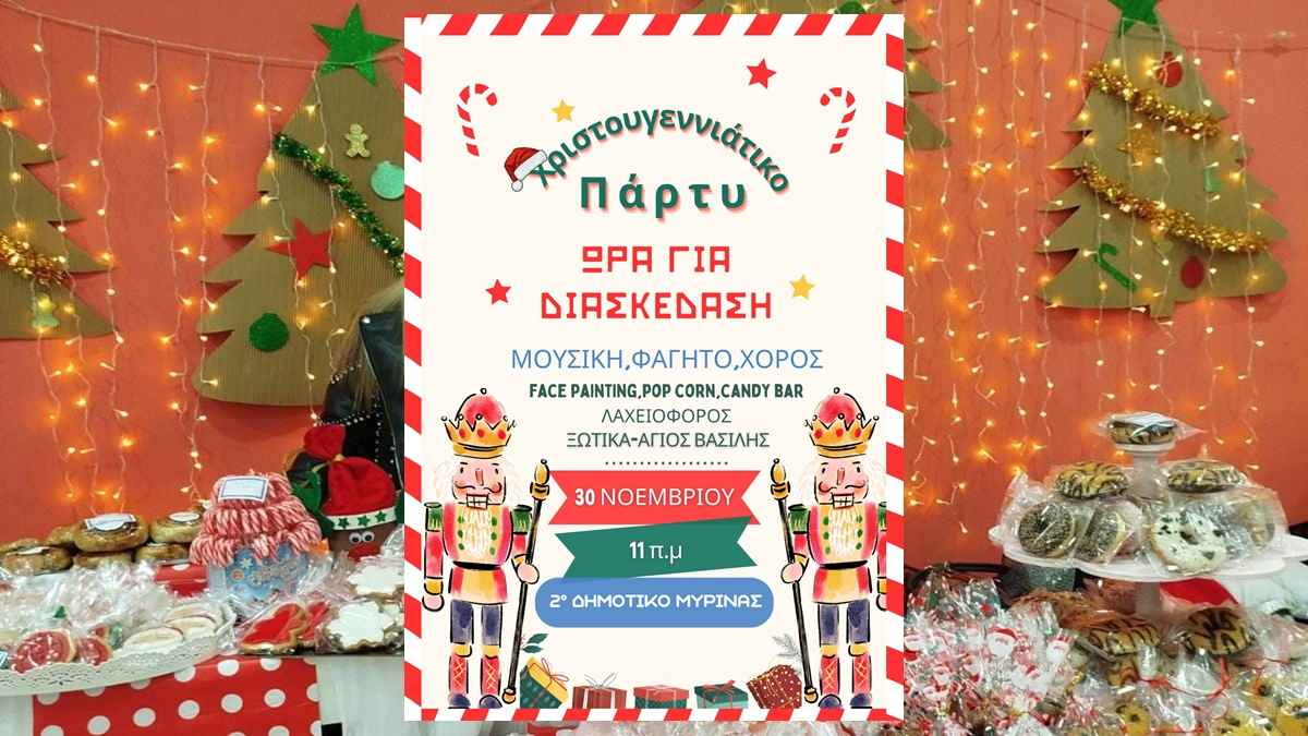 Ο Σύλλογος Γονέών και Κηδεμόνων καλεί γονείς και παιδιά να έρθουν και να ζήσουν μαζί την πρώτη μεγάλη γιορτινή συνάντηση της χρονιάς. Ένα όμορφο ξεκίνημα για τη χριστουγεννιάτικη περίοδο στη Μύρινα.