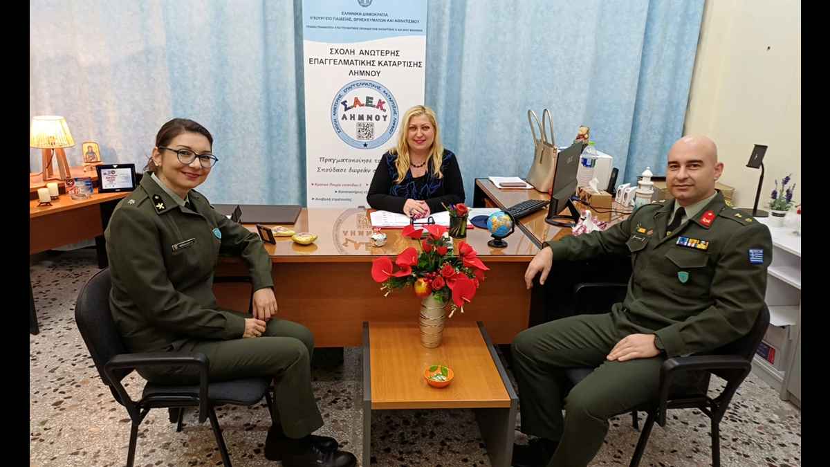 Πρόκειται για μια σημαντική πρωτοβουλία της Διευθύντριας της ΣΑΕΚ Λήμνου, κ. Ιουλίας Λυγδά, που για πρώτη φορά ανοίγει τον δρόμο για επίσημη Σύμπραξη της Σχολής με τις Ένοπλες Δυνάμεις του νησιού.