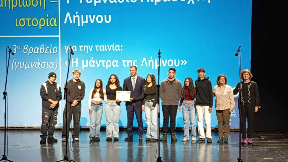 Στην κατηγορία Ντοκιμαντέρ Γυμνασίων (Ταινία Τεκμηρίωσης) με την ταινία «Η Μάντρα της Λήμνου» το Γυμνάσιο Λιβαδοχωρίου παρέλαβε από τον Γενικό Γραμματέα Επικοινωνίας και Ενημέρωσης κ. Δημήτρη Κιρμικίρογλου το 3ο Βραβείο.
