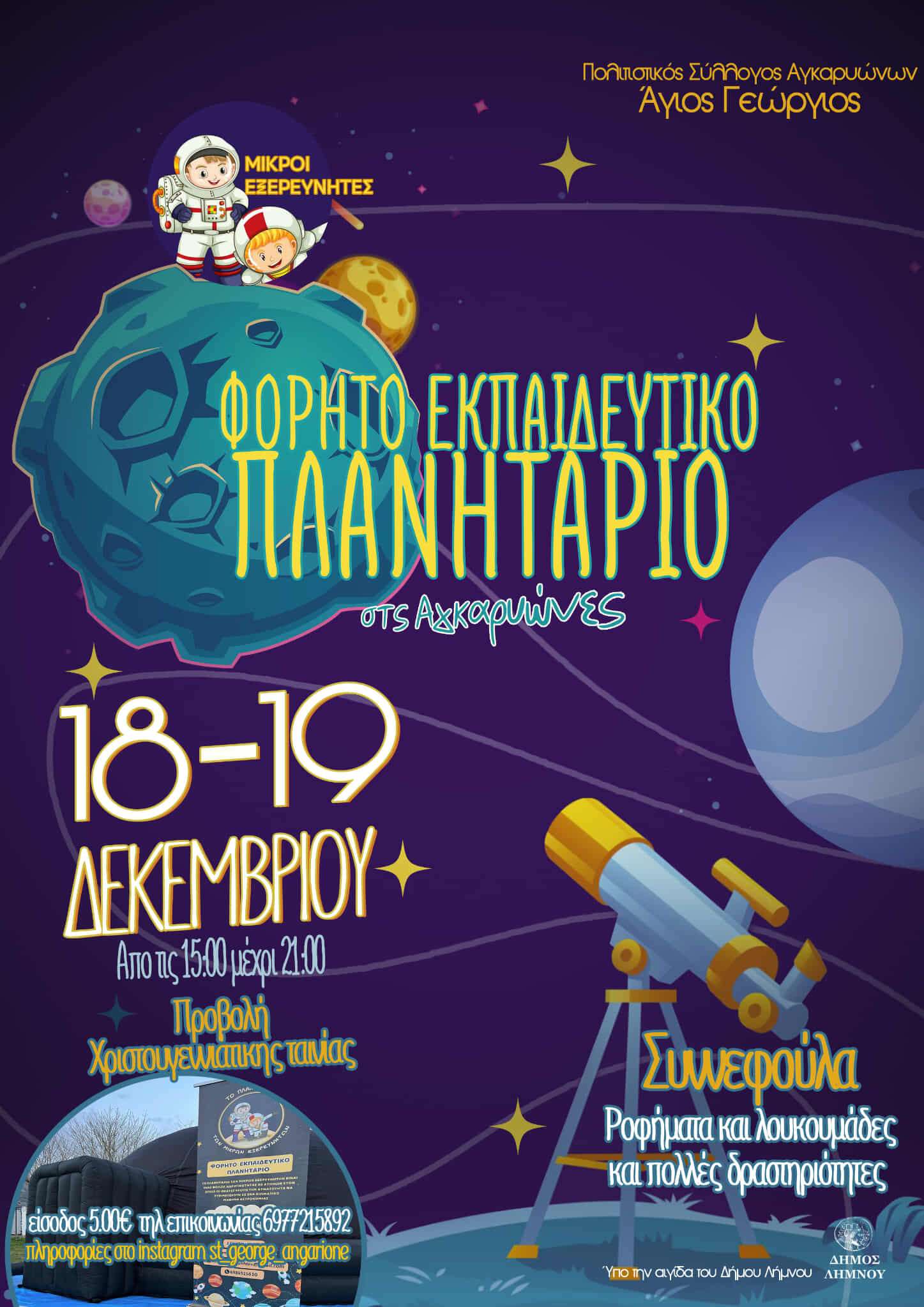 Λήμνος: Ένα Μαγικό Διήμερο στις Αγκαρυώνες με το Φορητό Εκπαιδευτικό Πλανητάριο!
