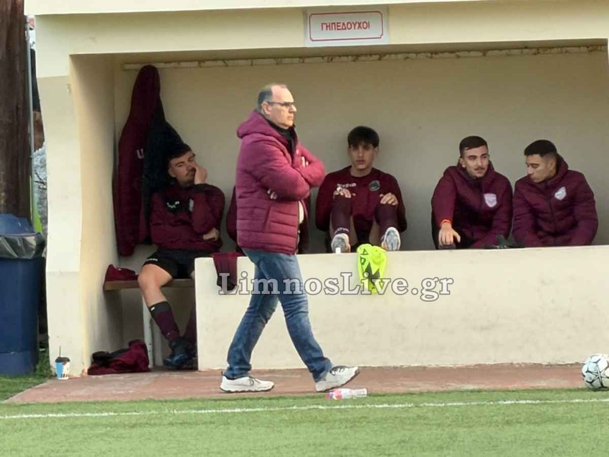 Ακριβώς δίπλα, με γκρι μπουφάν και αύρα ανθρώπου που έχει δει πολλά γήπεδα και ακόμα περισσότερα συμβούλια, ο Δημήτρης Μαρινάκης. Πρώην δήμαρχος Λήμνου, επικεφαλής του συνδυασμού «η Λήμνος μας» και κόουτς του Κάσπακα. Ήρεμος, ψύχραιμος, με ύφος «το ματς μπορεί να χάνεται, η εμπειρία ποτέ». Σαν να σκεφτόταν «έχω ξαναδεί τέτοια έργα»!