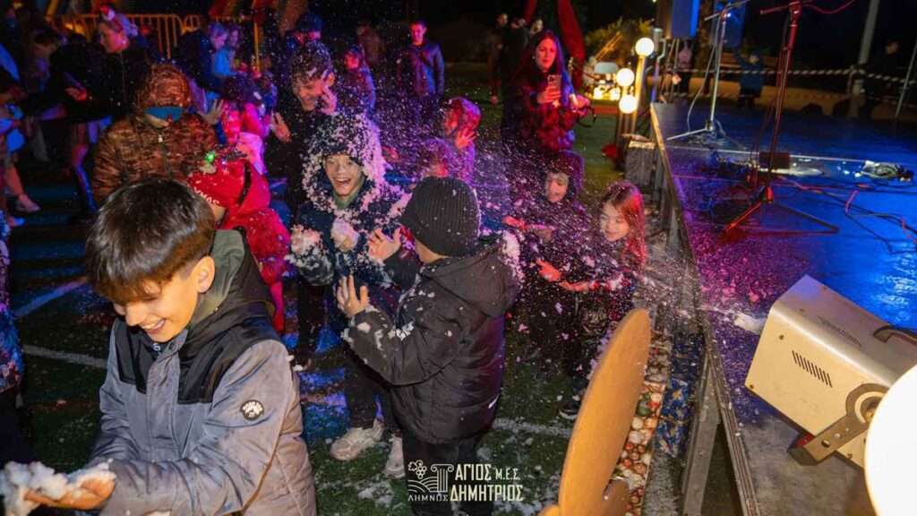 Το εορταστικό σκηνικό απογειώθηκε από τις δυναμικές και καλοδουλεμένες χορογραφίες του ΑΣ “Παλμός” και του Χοροδιδασκαλείου by Limnos, που γέμισαν το πάρκο ρυθμό, κίνηση και ζωντάνια, αλλά και από τα παιδιά των τμημάτων παραδοσιακών χορών του ΜΕΣ “Άγιος Δημήτριος”, τα οποία υπό την καθοδήγηση του χοροδιδασκάλου τους Νάσου Χαλκά έψαλαν κάλαντα από όλη την Ελλάδα, καθώς και από το Ρεϊζντερέ της Μικράς Ασίας, χαρίζοντας μοναδικές στιγμές συγκίνησης στο κοινό. Σημαντική υπήρξε η συμβολή των εθελοντών, οι οποίοι στάθηκαν ακούραστα στο πλευρό της διοργάνωσης, ενώ εντυπωσιακή ήταν και η προσέλευση του κόσμου που κατέκλυσε το πάρκο, παρά τις παράλληλες εκδηλώσεις που πραγματοποιούνταν στο νησί.