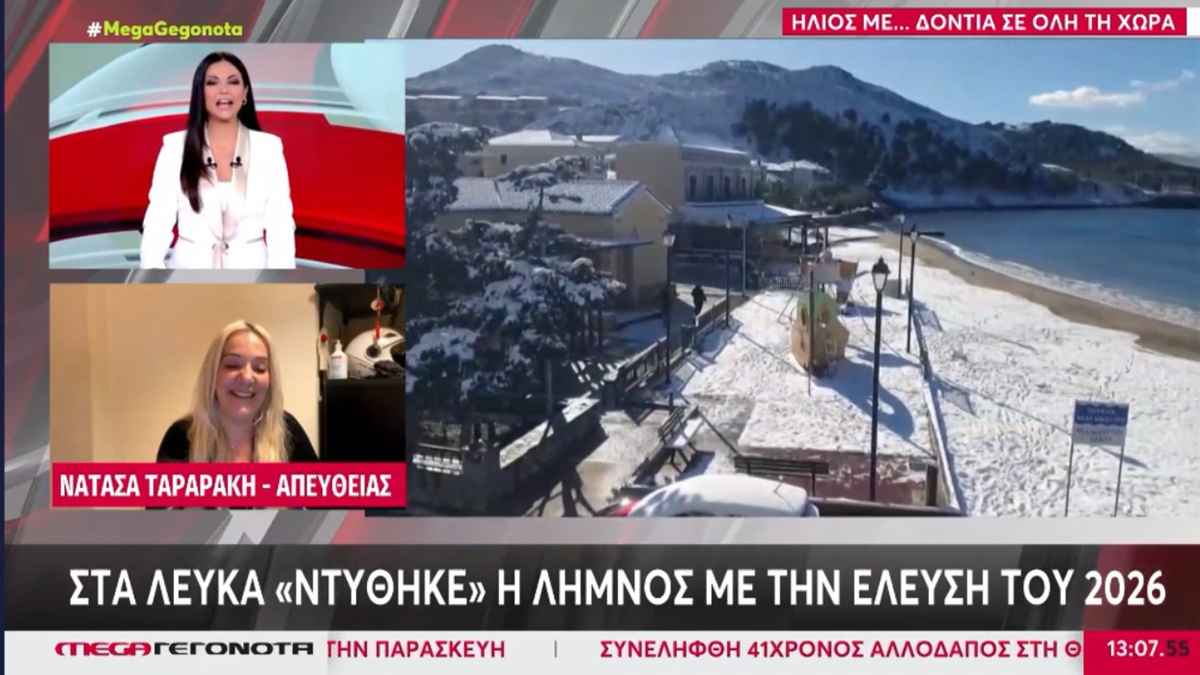Στο μεσημεριανό δελτίο του MEGA, οι εικόνες από τη χιονισμένη Λήμνο έκλεψαν την παράσταση.