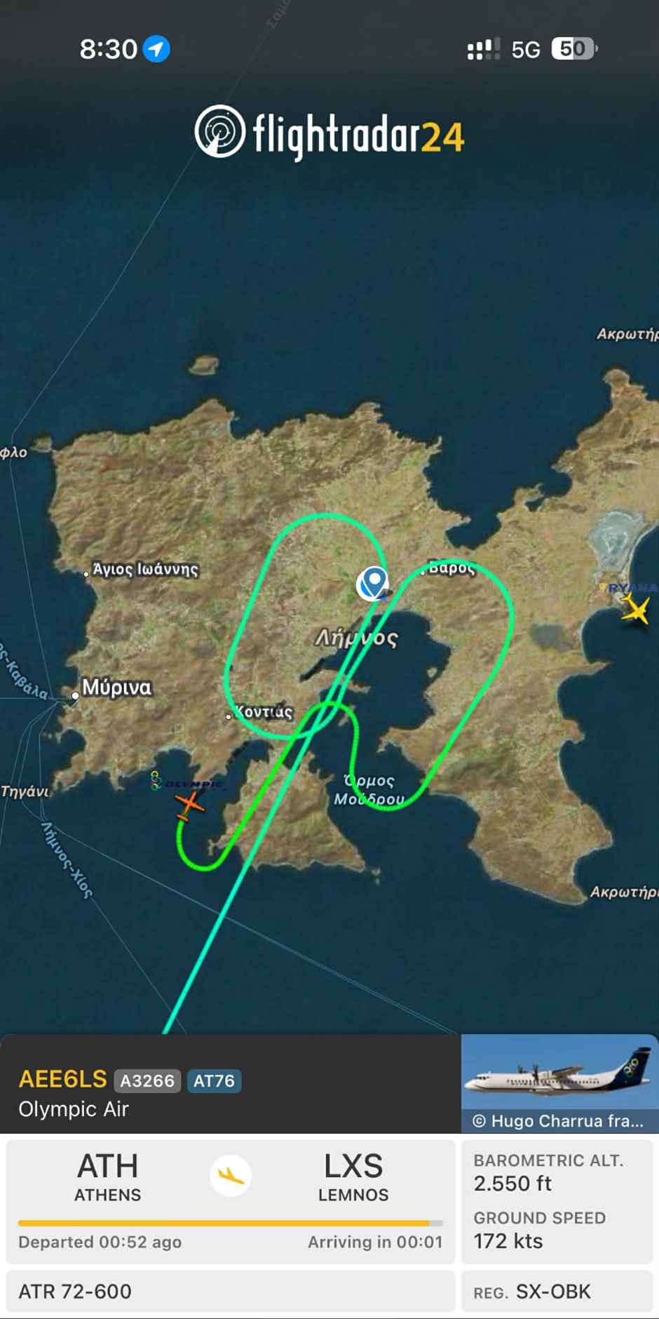 Όσοι παρακολουθούσαν την πορεία της πτήσης μέσω του Flightradar24 είδαν το αεροπλάνο να γυρίζει επίμονα πάνω από τη Μύρινα και τον Μούδρο, με τα σχόλια και τις απορίες να δίνουν και να παίρνουν. Τι συμβαίνει γιατί δεν προσγειώνεται, υπάρχει πρόβλημα, ήταν μερικά μόνο από όσα ακούγονταν.