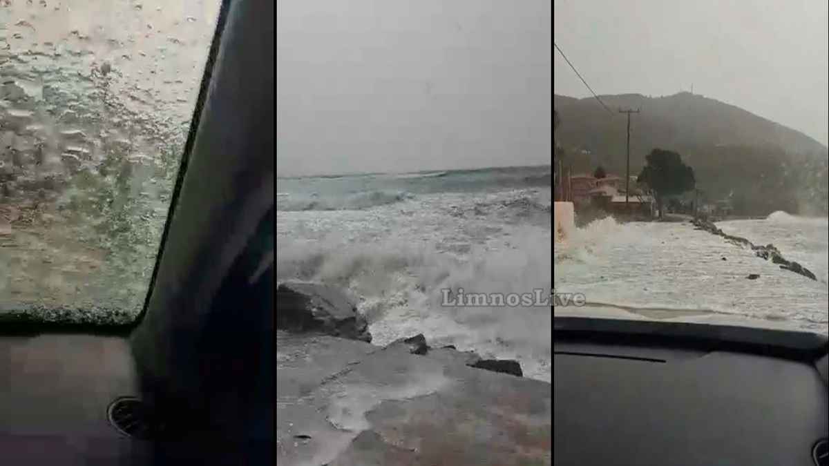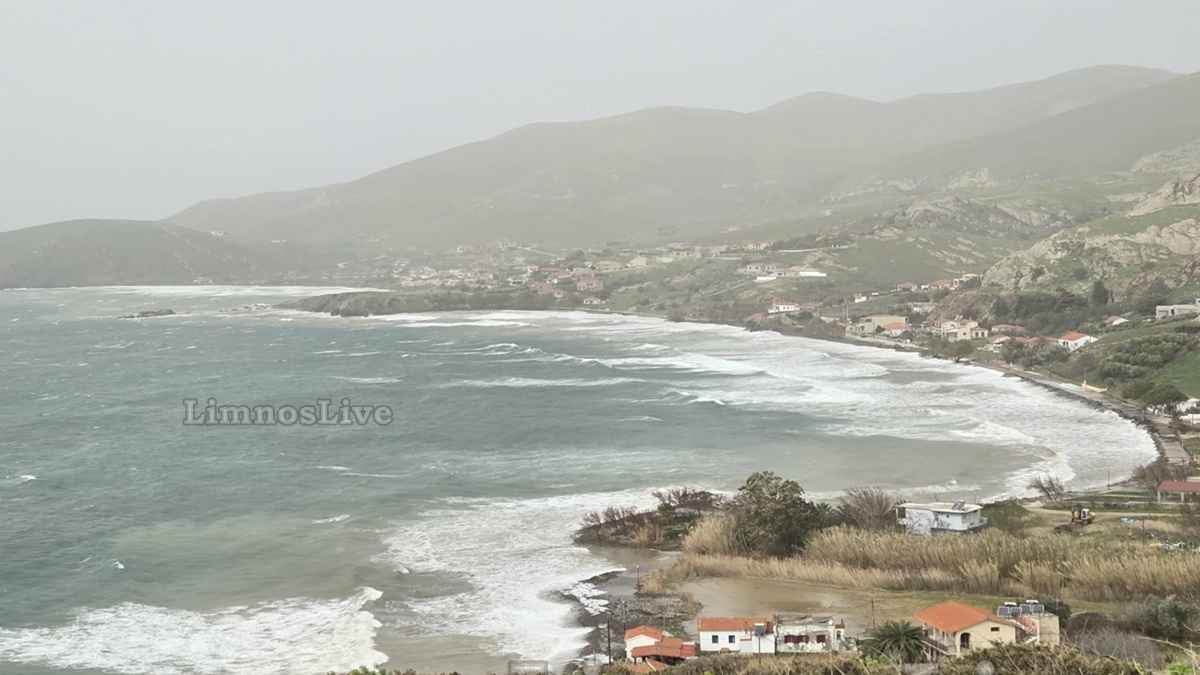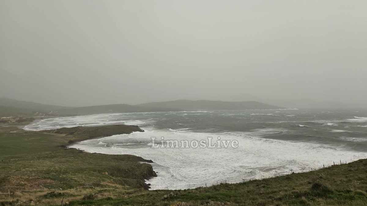Η εικόνα από τον Εβγάτη αυτή την ώρα αποτυπώνει τη σφοδρότητα των ανέμων που πλήττουν τη Λήμνο. Η θάλασσα είναι φουρτουνιασμένη, με τα κύματα να «σπάνε» με ένταση στην ακτογραμμή!