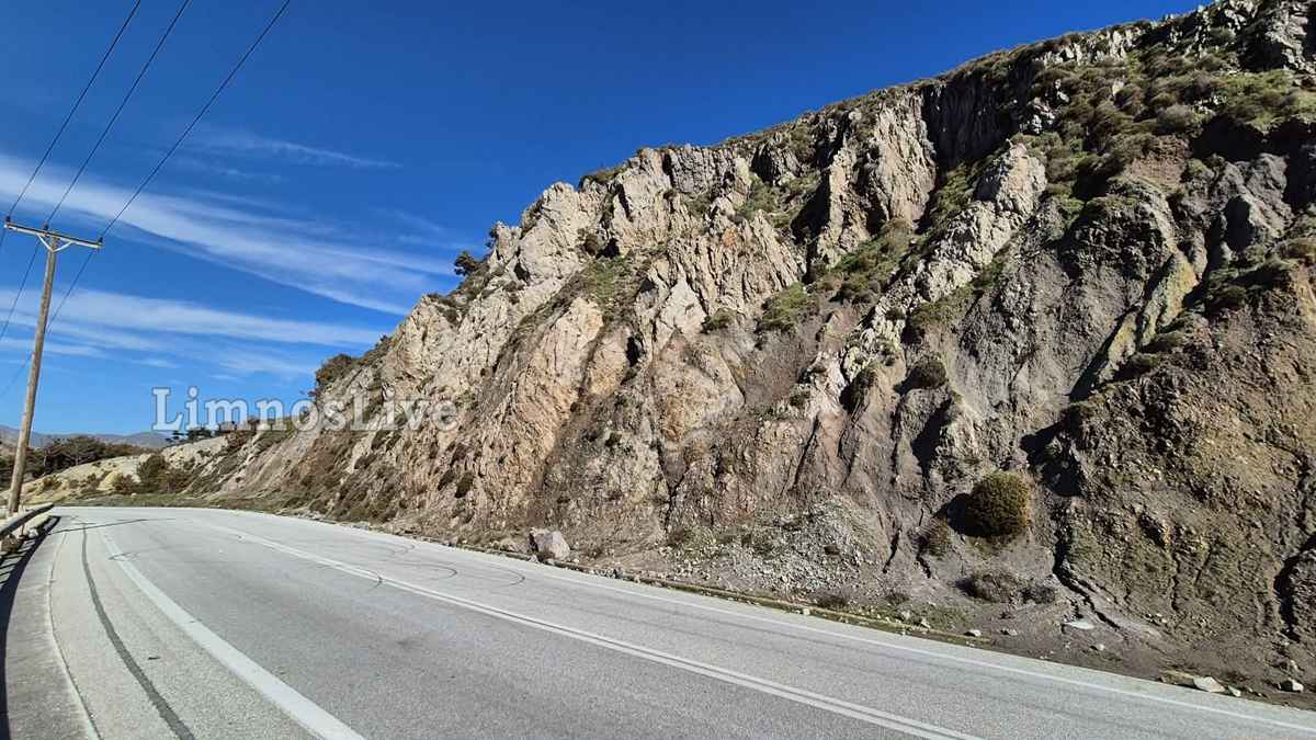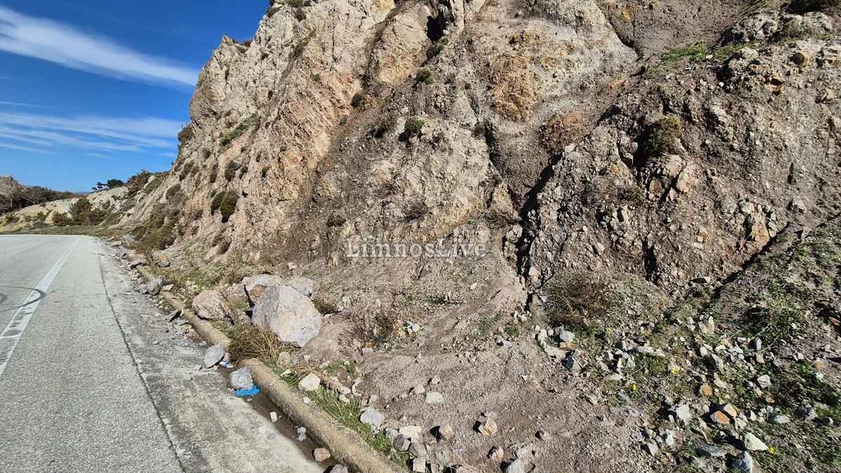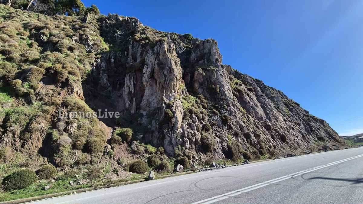 Είναι δυνατόν ένας από τους πιο κεντρικούς δρόμους που οδηγεί στο λιμάνι και τη Μύρινα να αφήνεται στην τύχη του; Οι οδηγοί περνούν από τη στροφή με την καρδιά στο στόμα, κοιτώντας ψηλά μην τους πλακώσει το βουνό.