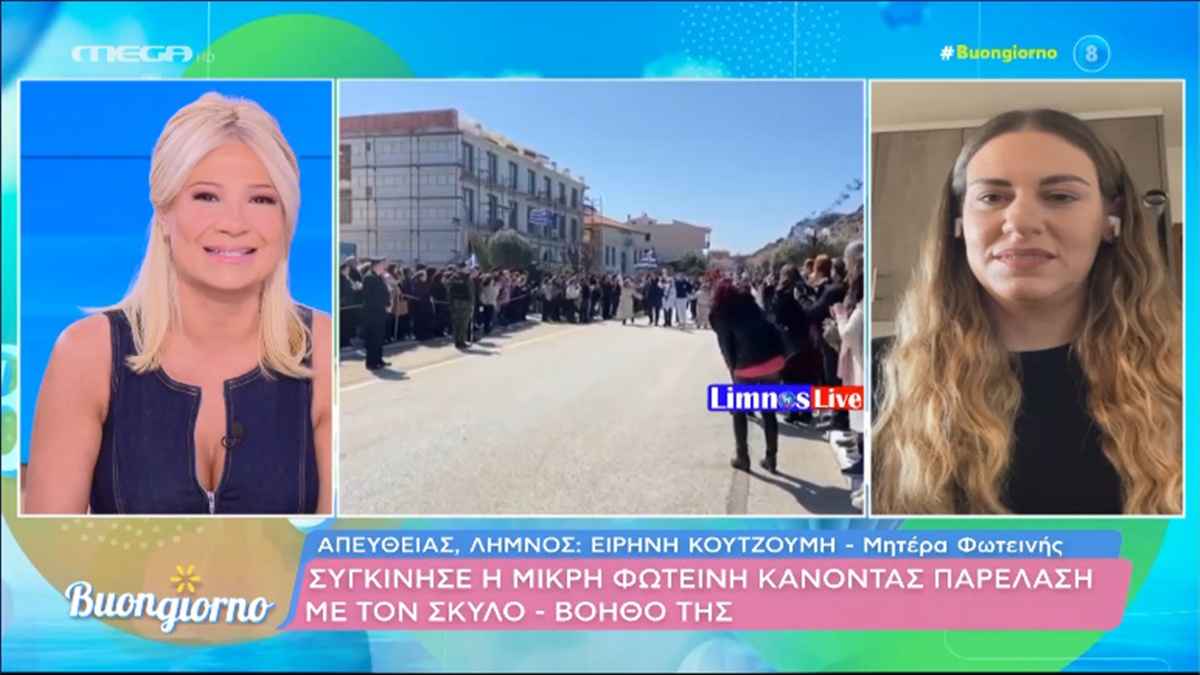 Η ιστορία αυτή πήρε εθνικές διαστάσεις όταν η εκπομπή «Buongiorno» της Φαίης Σκορδά, σε συνεργασία με την ανταποκρίτρια της Λήμνου στο MEGA Νατάσα Ταραράκη, φιλοξένησε τη μητέρα της Φωτεινούλας, Ειρήνη Κουτζουμη. Με λόγια καρδιάς, η κυρία Ειρήνη καθήλωσε το τηλεοπτικό κοινό, περιγράφοντας πώς ένας σκύλος μπορεί να αλλάξει ριζικά τη ζωή ενός παιδιού στο φάσμα του αυτισμού.