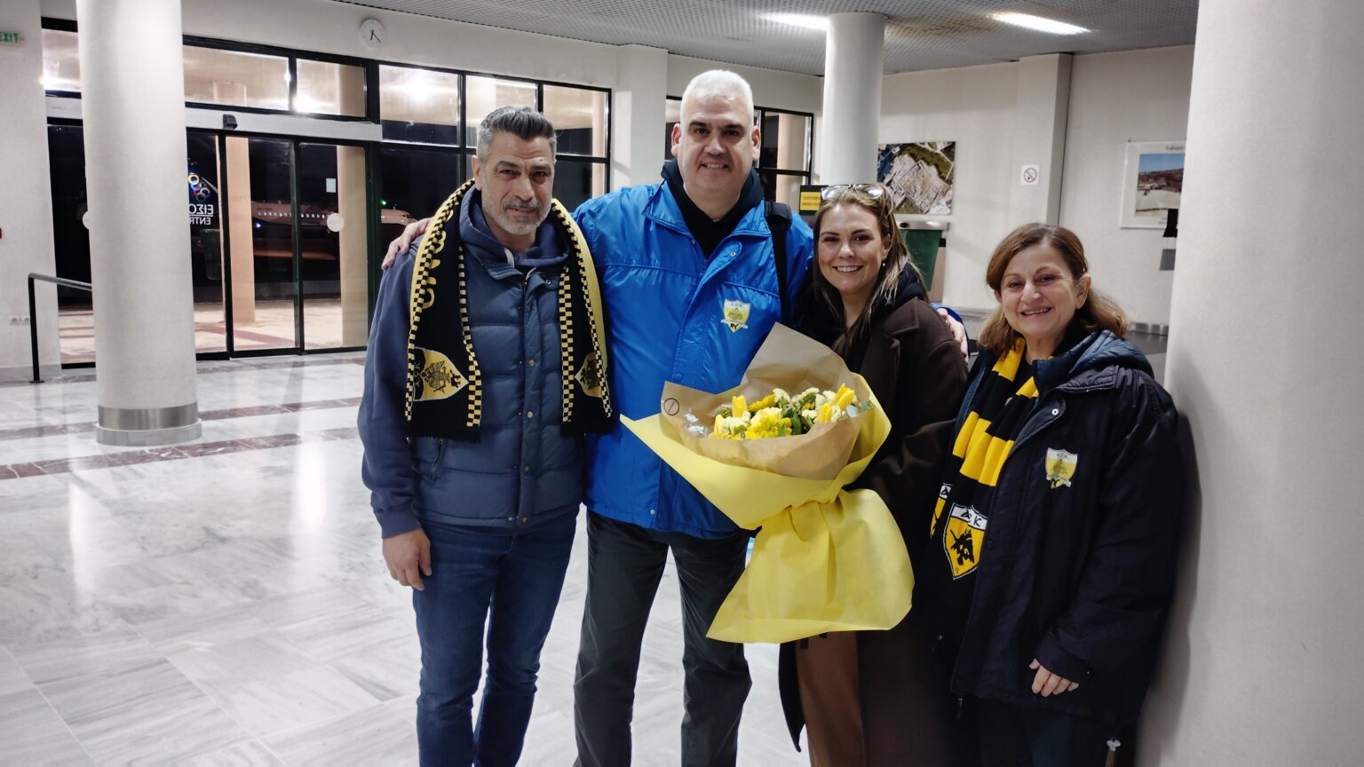 Από την πρώτη στιγμή της άφιξής του, οι ΑΕΚτζήδες του νησιού επεφύλαξαν θερμή υποδοχή, με συνθήματα, χαμόγελα και έντονη συγκίνηση, αποδεικνύοντας για ακόμη μία φορά τη διαχρονική τους αγάπη προς την ομάδα και τα πρόσωπα που έχουν γράψει τη δική τους ιστορία με τη φανέλα της.