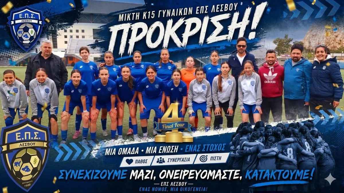 Θερμά συγχαρητήρια στα κορίτσια της Κ15 της ΕΠΣ Λέσβου για τη σπουδαία πρόκριση στους 4 της Διοργάνωσης έναντι της ΕΠΣ Ηρακλείου!!!
