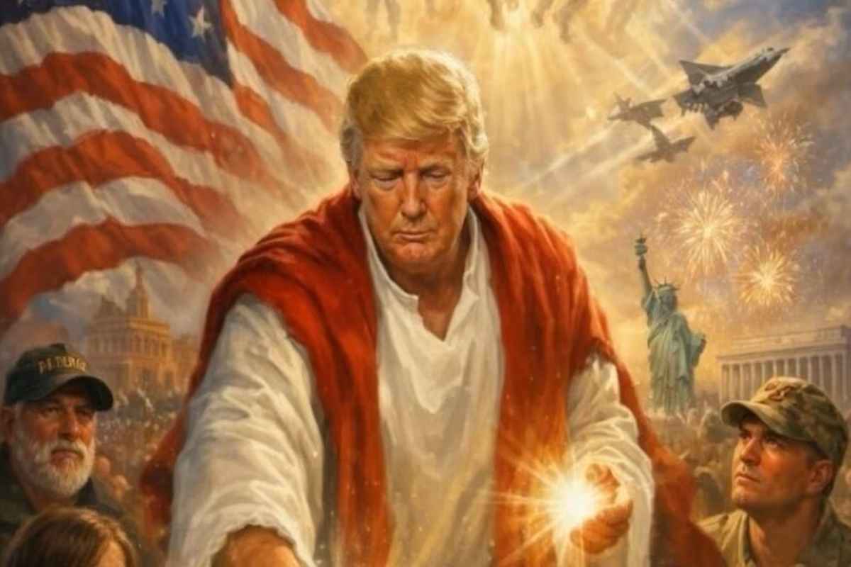 Η εικόνα, που δημοσιεύτηκε στην πλατφόρμα Truth Social, απεικονίζει τον Αμερικανό πρόεδρο με ενδυμασία που θυμίζει αγιογραφία, να ευλογεί έναν ασθενή, σε ένα σκηνικό γεμάτο εθνικά σύμβολα των ΗΠΑ.