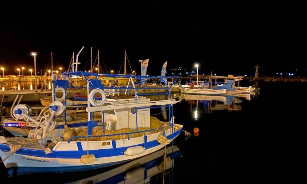 Όσο το σκοτάδι αραιώνει και τα μίλια λιγοστεύουν, από τον Αγιο Ευστράτιο με ρότα του πλοίου προς το λιμάνι της Μύρινας, αδρές φωτεινές δέσμες φανερώνονται...