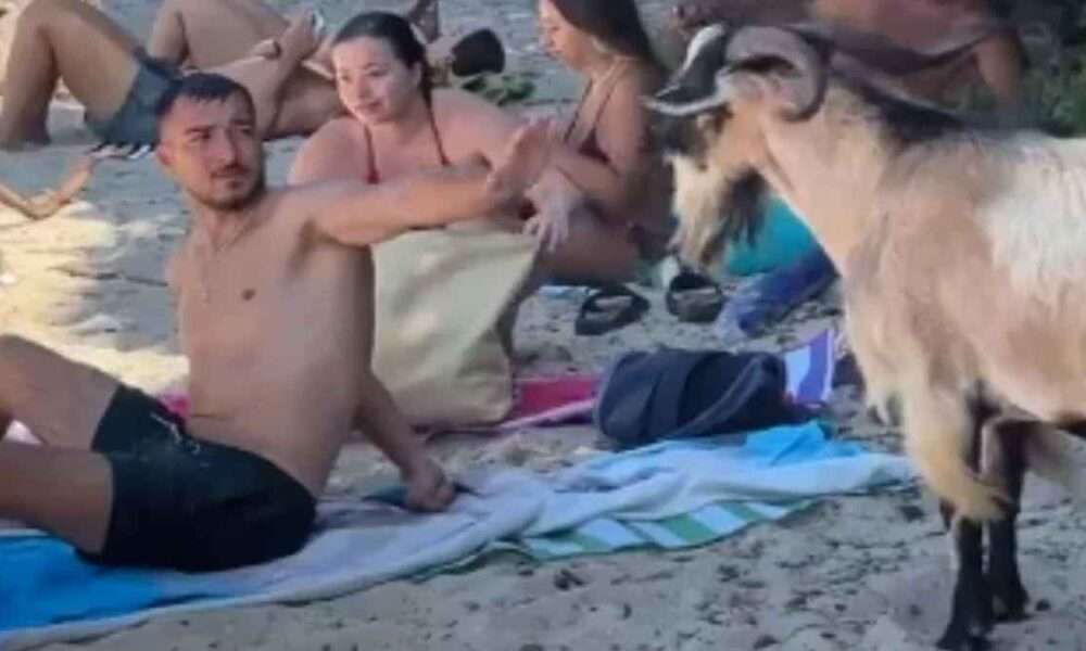 Το γνωστό στην περιοχή τετράποδο συνηθίζει να κατεβαίνει στην παραλία για να βρει λίγη σκιά και... νόστιμα σνακ