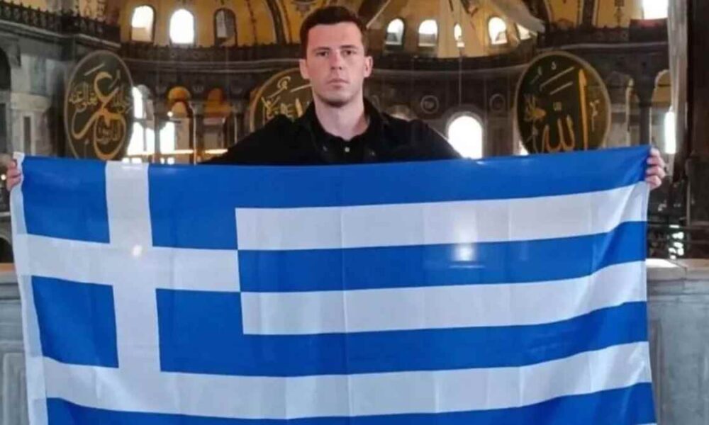 Ένας τολμηρός νεαρός άνοιξε την ελληνική σημαία στην Αγιά Σοφιά, γράφοντας «Αγαπημένη μου Πόλη, για πάντα ελληνική».