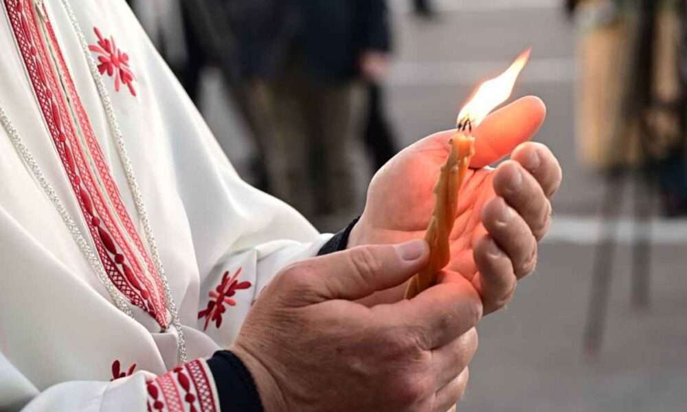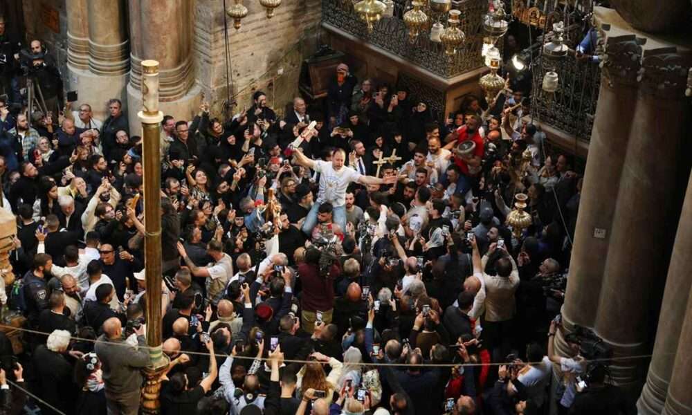 Ο Πατριάρχης Ιεροσολύμων εξήλθε από τον Πανάγιο Τάφο κρατώντας τις 33 λαμπάδες, όπως προστάζει το τελετουργικό, μία για κάθε έτος του Χριστού στη Γη