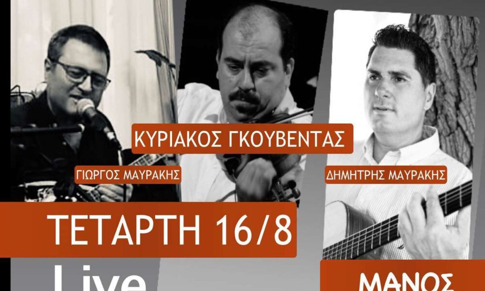 ΤΕΤΑΡΤΗ Live εκτάκτως στο ΜΑΝΟΣ Ο Κυριάκος Γκουβέντας με το βιολί του σε ένα παραδοσιακό γλέντι! Μαζί του: Γιώργος Μαυράκης – ούτι, μπουζούκι, τραγούδι Δημήτρης Μαυράκης...