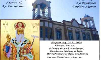 [fb_button] Η Αγία Εκκλησία μας, όπως κάθε χρόνο στις 09 Νοεμβρίου γιορτάζει την Μνήμη του Αγίου Νεκταρίου Αιγίνης Στον Ιερό ναό Αγίου Δημητρίου Σαρδων Λήμνου την...