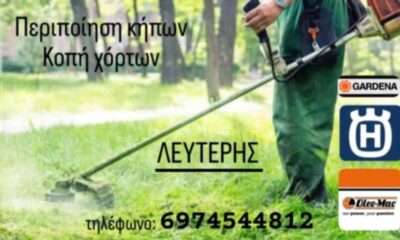 Αναζητάτε αξιόπιστη και επαγγελματική περιποίηση του κήπου σας; Ο Λευτέρης είναι η ιδανική επιλογή για εσάς! Με εμπειρία και τα κατάλληλα εργαλεία, αναλαμβάνει υπηρεσίες κοπής χόρτων...