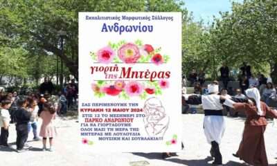 Με σεβασμό στην παράδοση και την αγάπη που αξίζουν οι μητέρες, ο Εκπολιτιστικός Μορφωτικός Σύλλογος Ανδρωνίου διοργανώνει και φέτος μια ξεχωριστή εκδήλωση αφιερωμένη στη Γιορτή της...