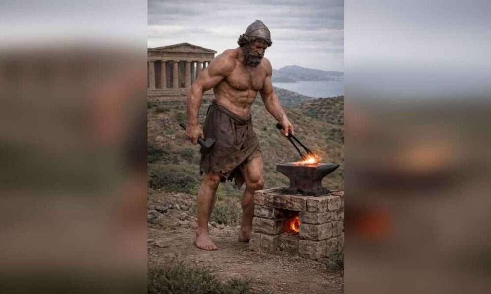 Φανταστείτε να υπήρχε ένα υπερμεγέθες άγαλμα του Ηφαίστου στο λιμάνι της Μύρινας, να υποδέχεται τους επισκέπτες, και να θυμίζει στους κατοίκους του νησιού την μυθιστορία του.