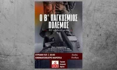 Με αφορμή την 80η επέτειο της 9ης του Μάη, Ημέρας της Αντιφασιστικής Νίκης των Λαών, η Τομεακη Επιτροπή του ΚΚΕ Λήμνου σας καλεί στην προβολή του...