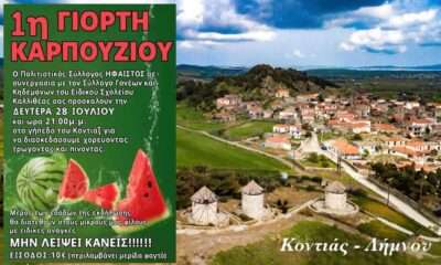 Η πιο δροσερή γιορτή του καλοκαιριού έρχεται στον Κοντιά και υπόσχεται να μας ξεδιψάσει με άφθονο καρπούζι, μουσική και κέφι! Τη Δευτέρα 28 Ιουλίου, στις 21:00,...