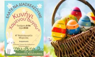 Ο Σύλλογος Γονέων και Κηδεμόνων του 4ου Νηπιαγωγείου Μύρινας διοργανώνει σήμερα, Τετάρτη 9 Απριλίου, στις 18:00, μια ξεχωριστή πασχαλινή δράση που θα ενθουσιάσει τα παιδιά: το...