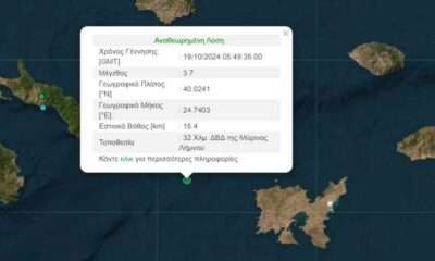 Το επίκεντρο του σεισμού εντοπίζεται 32 χιλιόμετρα δυτικά, βορειοδυτικά της Μύρινας Λήμνου, ενώ το εστιακό βάθος υπολογίζεται στα 15,4 χιλιόμετρα