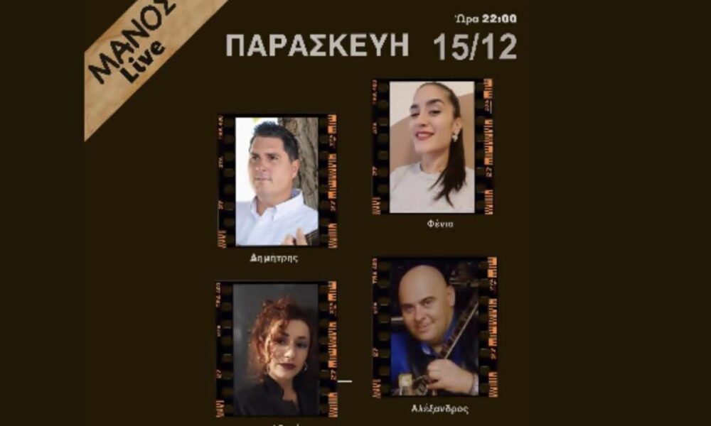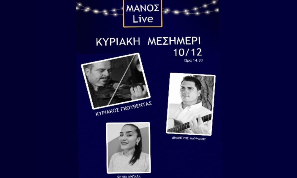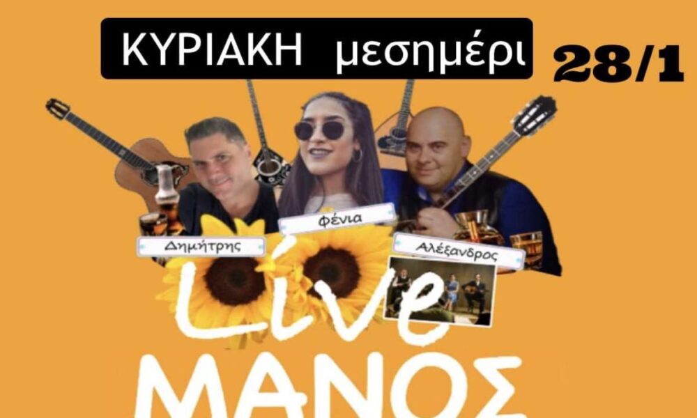 Κυριακή μεσημέρι LIVE στο ΜΑΝΟΣ Με τους: Φένια -τραγούδι Δημήτρης- κιθάρα, τραγούδι Αλέξανδρος – τραγούδι, μπουζούκι Κρατήσεις 6932411134