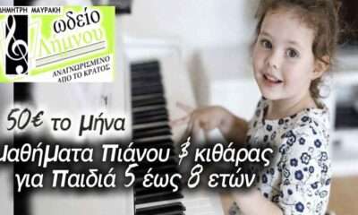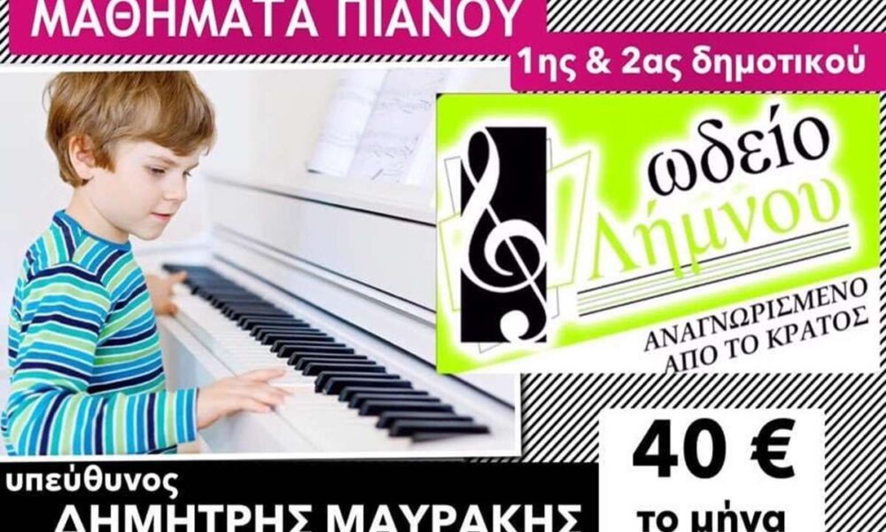 Μαθήματα πιάνου για παιδιά 5 έως 8 ετών 40€ το μήνα Ωδείο Λήμνου Δημήτρη Μαυράκη Αναγνωρισμένο από το κράτος 15 χρόνια λειτουργίας!