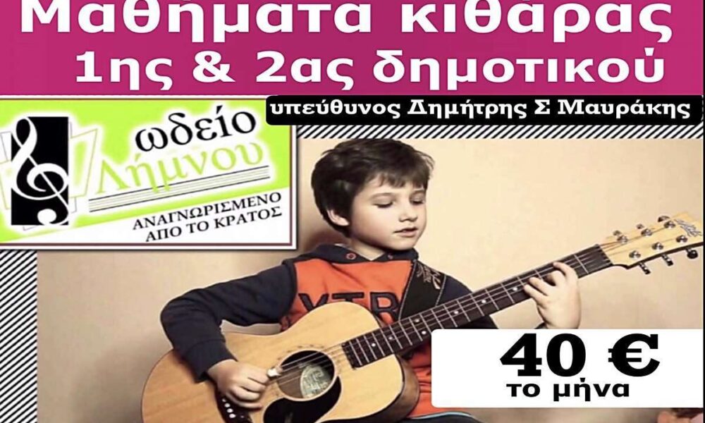 Για τη νέα σχολική χρονιά Μαθήματα κιθάρας για παιδιά 1ης & 2ας δημοτικού 40€ το μήνα! Ωδείο Λήμνου Δημήτρη Μαυράκη Αναγνωρισμένο από το κράτος 15 χρόνια...