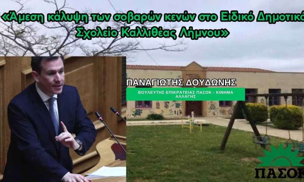 Ο Βουλευτής Επικρατείας του ΠΑΣΟΚ – Κινήματος Αλλαγής Παναγιώτης Δουδωνής κατέθεσε ερώτηση προς την Υπουργό Παιδείας ζητώντας την άμεση κάλυψη των σοβαρών κενών στο Ειδικό Δημοτικό...