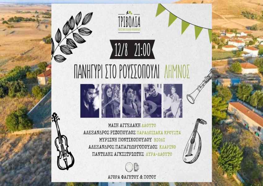 [fb_button] Tο Ρουσσοπούλι Λήμνου, προετοιμάζεται για μια τοπική γιορτή – πανηγύρι που θα πραγματοποιηθεί φέτος για πρώτη φορά στις 12 Αυγούστου, στον περιβάλλοντα χώρο του πρώην...