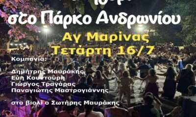 Τετάρτη 16 Ιουλίου, με αφορμή τη γιορτή της Αγίας Μαρίνας.