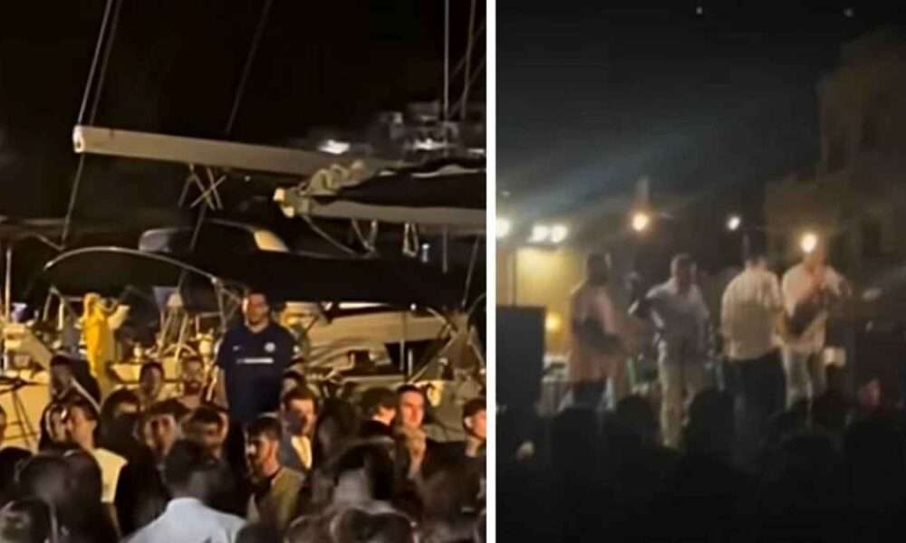 Στα χέρια πιάστηκε ο κόσμος στο πανηγύρι στην Αμοργό μετά την κίνηση ορισμένων να ανοίξουν παλαιστινιακές σημαίες, φωνάζοντας «λευτεριά στην Παλαιστίνη». Ο τραγουδιστής προσπαθούσε να ηρεμήσει...