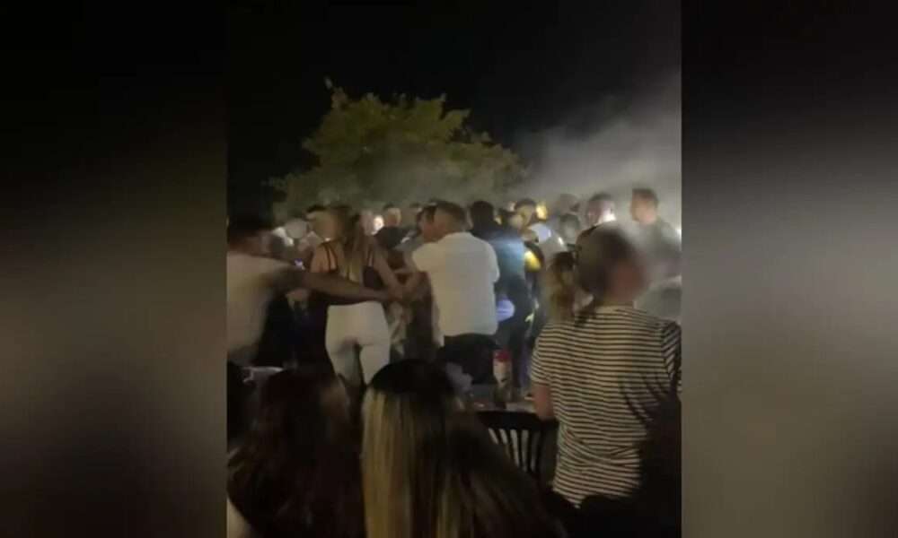 Κατά τη διάρκεια της συμπλοκής «έφευγαν» στον αέρα τραπέζια, καρέκλες και μπουκάλια ενώ η τραγουδίστρια προσπαθούσε από τη σκηνή να ηρεμήσει τα πνεύματα