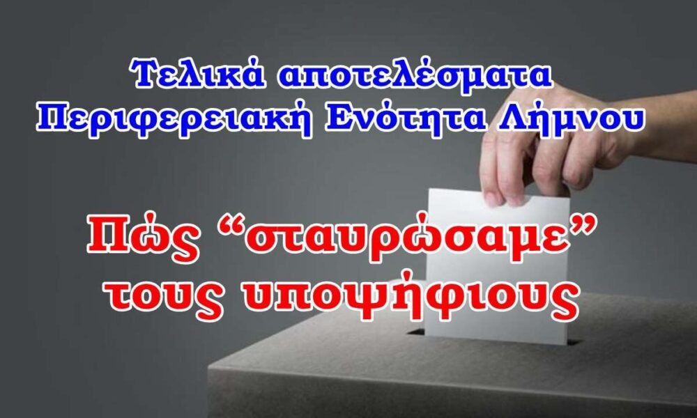 Ολοκληρώθηκε η διαδικασία καταχώρησης των αποτελεσμάτων των αυτοδιοικητικών εκλογών και της σταυροδοσίας για την Περιφέρεια Βορείου Αιγαίου στη Λήμνο από το Πρωτοδικείο Μυτιλήνης Το ποιοι εκλέγονται...