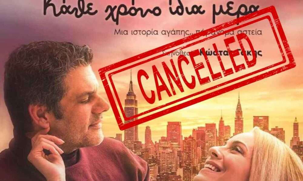 Δεν θα πραγματοποιηθεί τελικά η παράσταση «Κάθε χρόνο ίδια μέρα», η οποία ήταν προγραμματισμένη για αύριο, Τετάρτη 18 Φεβρουαρίου, στο Κινηματοθέατρο «Μαρούλα» στη Μύρινα. Η ακύρωση...