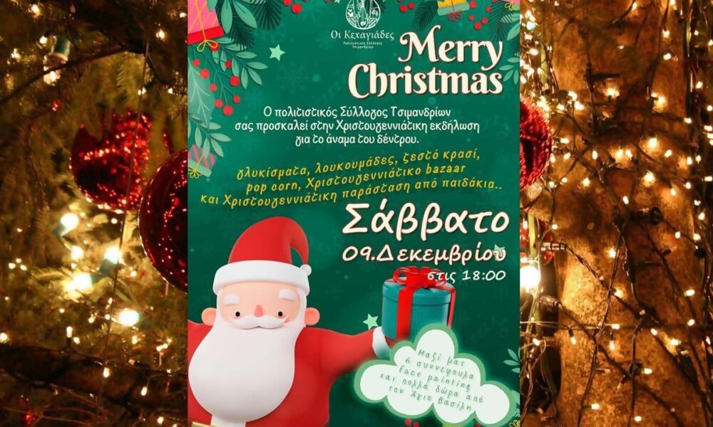 Για το Σάββατο 9 Δεκεμβρίου στις 18:00 αποφάσισαν να φέρουν την μαγεία των Χριστουγέννων στα Τσιμάνδρια ο Πολιτιστικός Σύλλογος Τσιμανδριών οι Κεχαγιάδες και σας προσκαλούν στο...